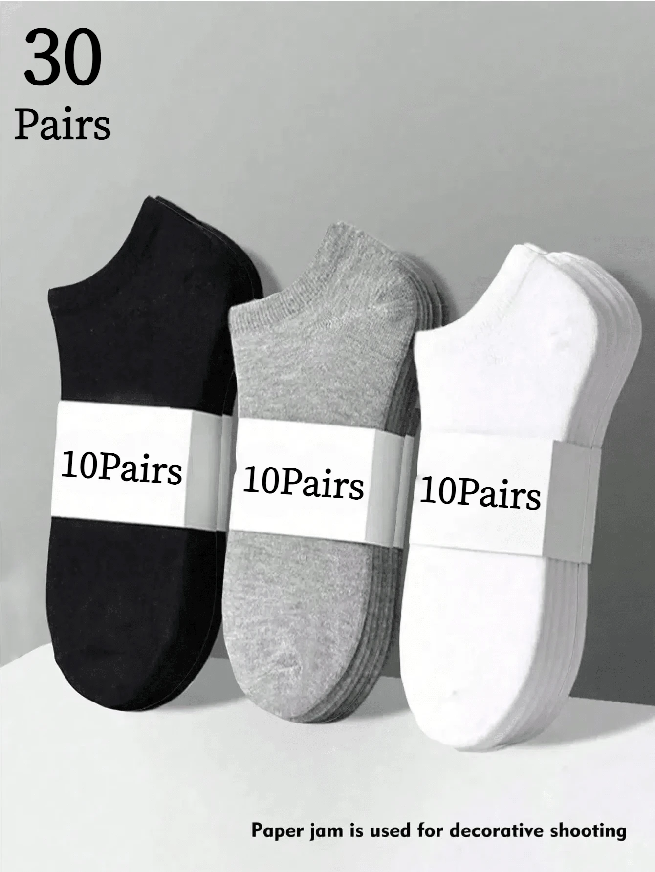 30 Pairs (10 Black, 10 White, 10 Gray)