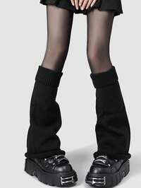 ROMWE1 Pair Harajuku Style Thigh High Leg Warmers, Slimming Black/White Over-The-Knee Leg Warmers, Fashion Lace-Up Leg Warmers, Irregular Ruffle Leg Warmers, Flared Leg Warmers, Versatile For Casual, Street, And Stylish Outfits, Suitable For Spring, Autumn, Winter #3 Bestseller