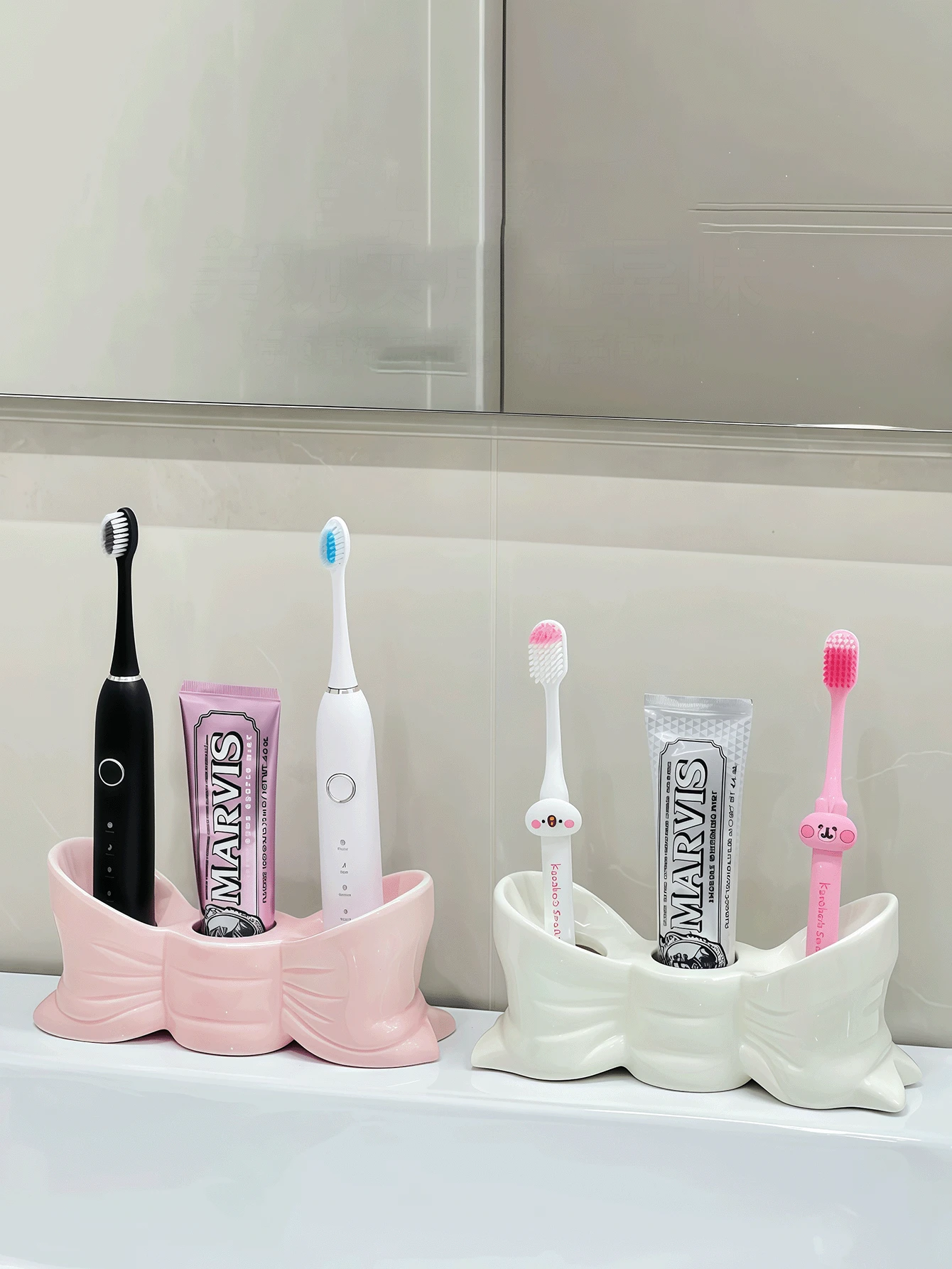 1 Piece Nordic Style Bow Shape Toothbrush Holder, Electric Toothbrush Holder, Cosmetic Storage Rack, Toothbrush Storage Box, Soap Dish, Home Desktop Decorative Holder, Aesthetic Room Decor, Home Decor, Space Saving Organization, Kitchen, Bathroom, Bedroom Accessories