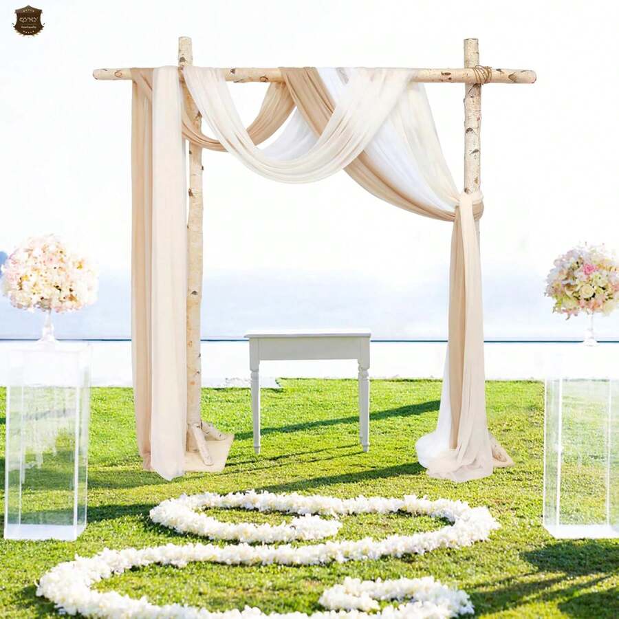 1 Set White Tulle & 1 Set Deep Champagne Tulle, Wedding Arch Drape Backdrop Decor, Suitable For Engagement, Ceremony, Reception, Celebration, Bridal Shower, Outdoor Hanging Decoration