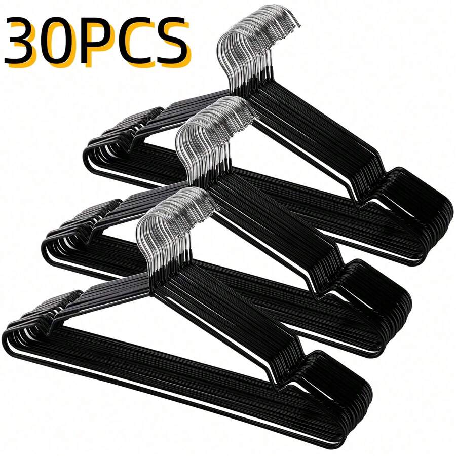 10/30pcs Metal Wire Hangers, Non-Slip Closet Organizer Clothing Hangers, Round Notch Metal Shirt Hangers, Suitable For Shirts, Suits, Jackets - Back To School, Wardrobe Organization