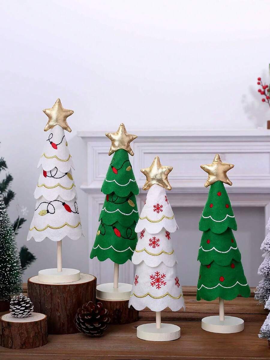 1pc Cute Christmas Tree Fabric And Wooden Ornaments, Window And Desktop Christmas Embroidered Snowflake Decor