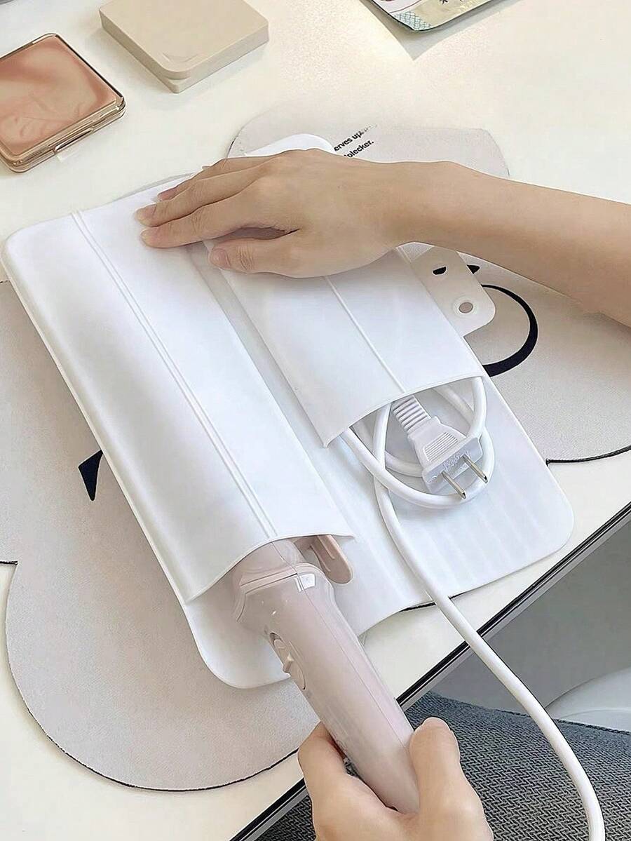 1pc Delicate And Simple Fashionable White Silicone Mat Hair Straightening Clip Heat Insulation Straightener And Flat Iron Protective Cover, Multiple Colors Portable Silicone Heat-Resistant Mat For Travel. Decorations Decor Festival Decor Room Decor Home Decor