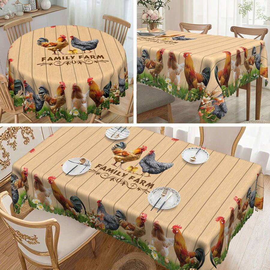 1pc Farmhouse Rooster & Floral Polyester Tablecloth - Round/Rectangle, Embossed Floral Trim, Vibrant Spring/Summer Design, Suitable For Picnics, Dinner Parties, Kitchen & Dining Room Decor, Country Farmhouse Decor, Multiple Sizes Available