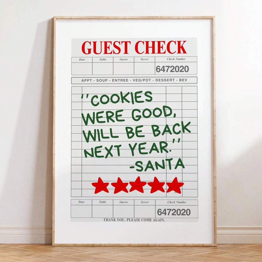 1pc Fun Santa Claus Rating Sign Christmas Print: Stylish Holiday Wall Art, Wall Decor, Posters, Framed Wall Art, Room Decor, Wall Art, Room Decor Aesthetics, Vintage Decor, Living Room Wall Art - Canvas (Optional Frame)