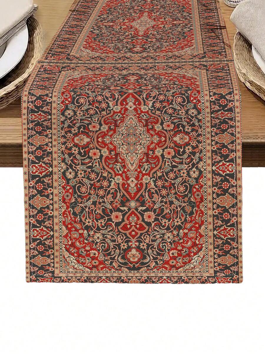 1pc Geometric Pattern Printed Table Runner, 4pcs Geometric Pattern Printed Placemats, Suitable For Holidays, Parties, Birthdays, Dinners, Kitchen & Dining Room Table Decor, All Season Home & Living Decor