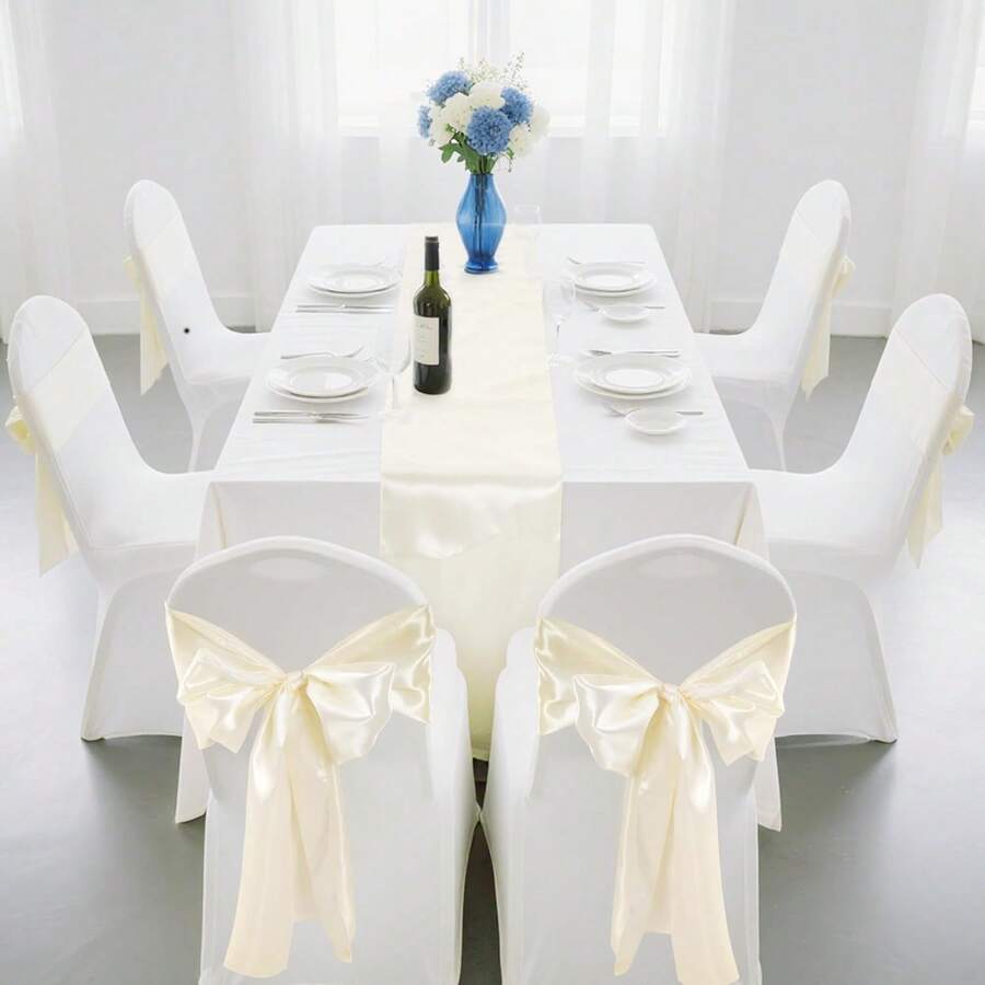 1pc Satin Table Runner, 10pcs Bowknot Chair Back Decorations, Smooth Fabric Decor Suitable For Wedding, Party, Birthday, Restaurant
