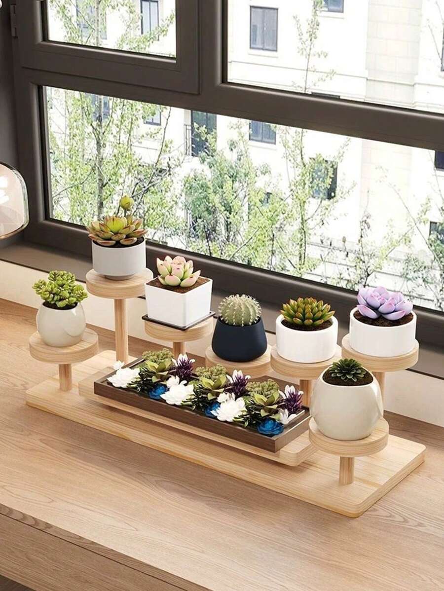 1pc Wooden Creative Figurine Display Stand, Jewelry, Watch, Perfume, Cosmetics, Candy, Succulent, Tiered Storage Shelf