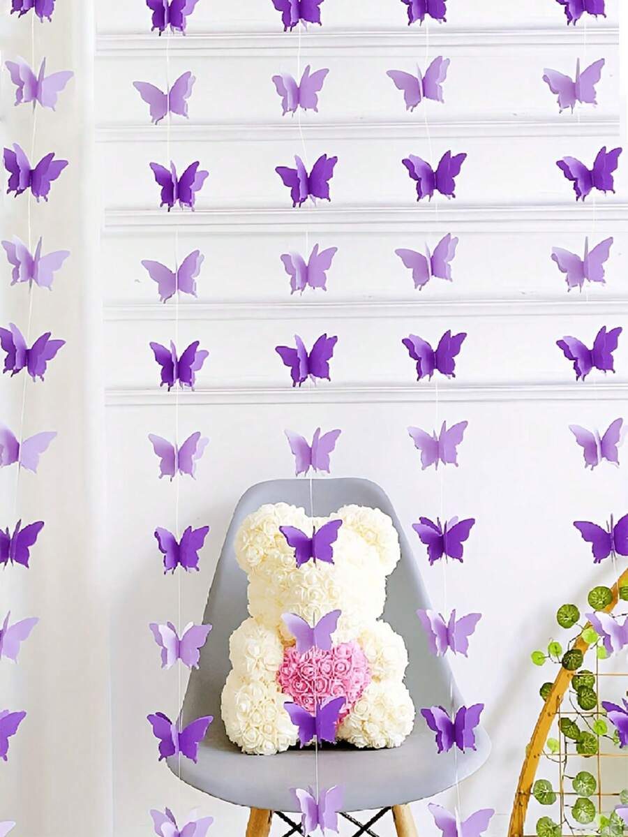 2m 18pcs 3D Paper Butterfly Flower DIY Banner Decoration Butterfly String Flower Colorful Flag, Suitable For Wedding, Valentine's Day And Birthday Party Theme Decoration Holiday Banners, Outdoor Garden Hanging Decorations, Curtain Hanging Pendants, Home Room Decoration