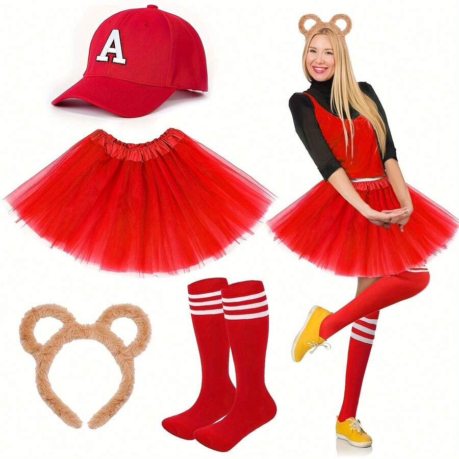 4-Piece Cute Chipmunk Costume Set, Including Ear Headband, Puffy Skirt, Matching Socks And Clothing - Bright Colors Suitable For World Book Day, Carnival, Theme Parties - Comfortable And Easy To Wear Party Costumes
