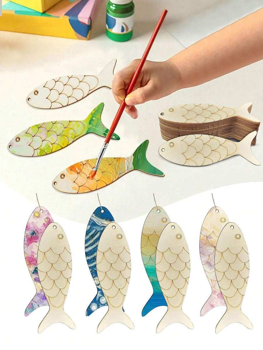 40PCS/20sets DIY Wooden Fish Cutouts Unfinished Wood Ornament Blanks Fish Shaped Wooden Things To Paint, Wood Hanging Ornaments With Hemp Rope Crafting Supplies Home Party Decoration,Open Design, Easy To Hang,Halloween Decorations, Halloween Party Supplies, Christmas Decorations, Christmas Party Supplies