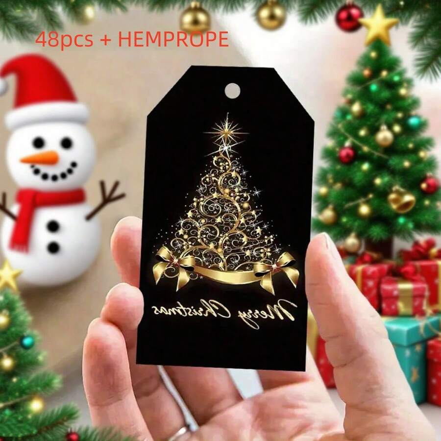 48pcs Christmas Black Gold Gift Tags With Hemp String – Festive Labels For Holiday Gift Wrapping, Christmas Tree Ornaments & Festive Home Decor, Ideal For Christmas Party Supplies