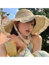 in Beige Women Straw Hat