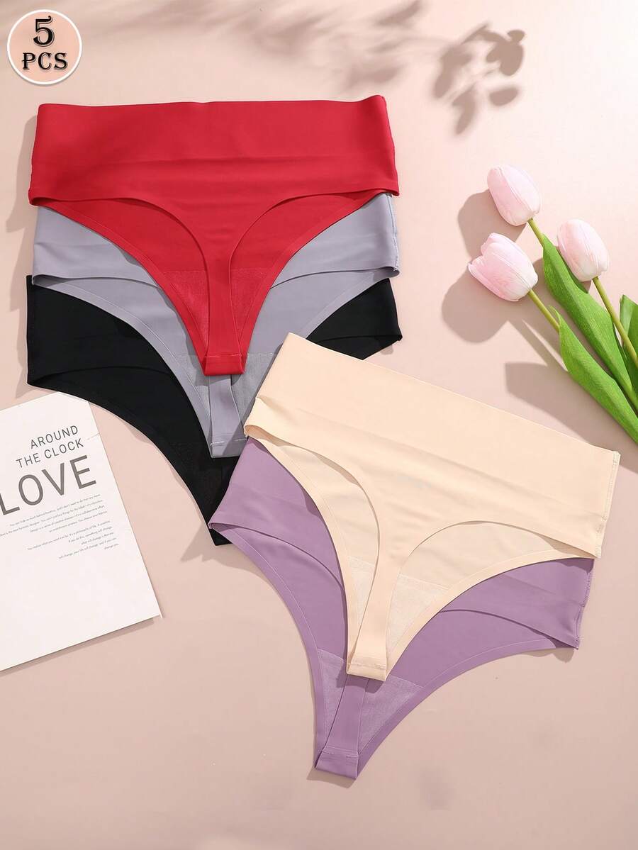 FINETOO 5pcs Women's Seamless High Waist Comfortable Thong Panties