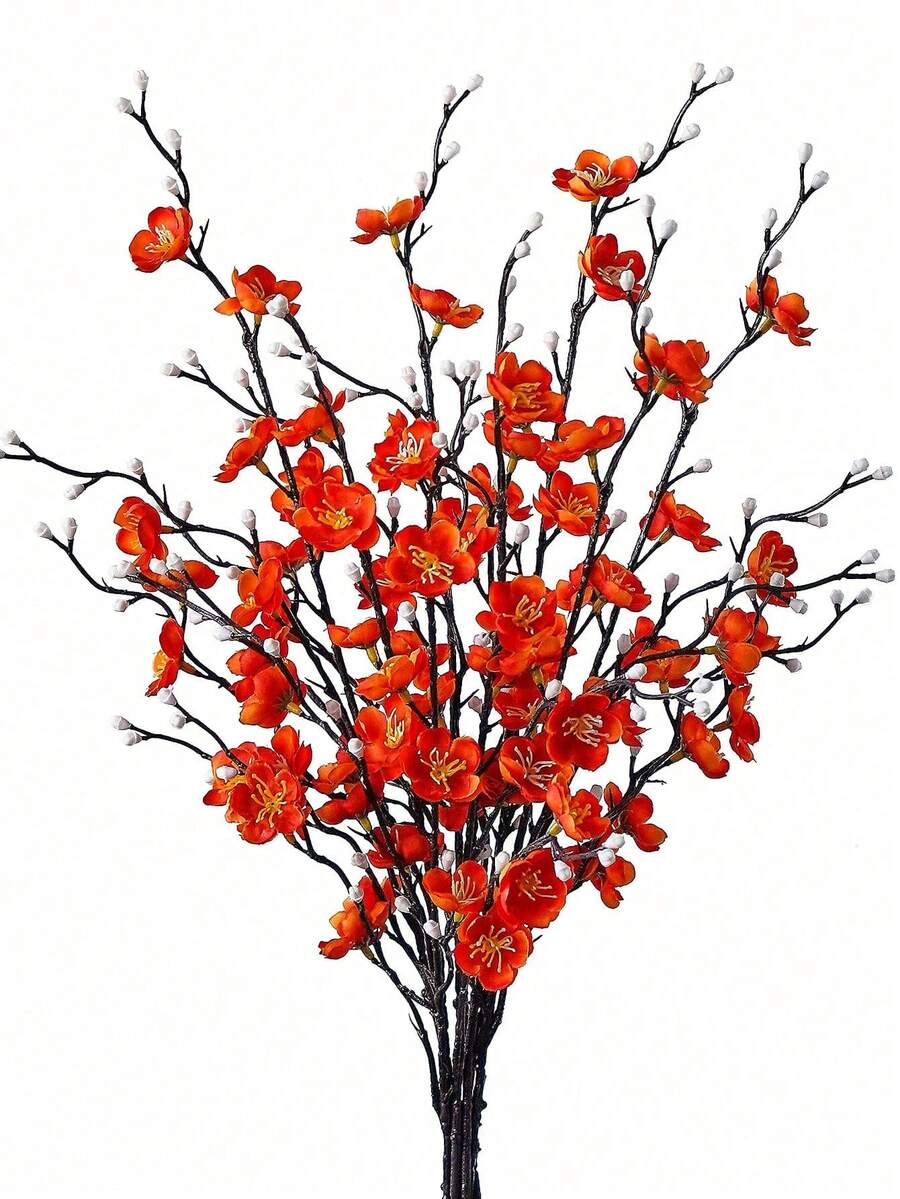 Artificial Flowers White Plum Blossom 21.7'' Fake Wintersweet Long Stem Plastic Flowers Home Hotel Office Wedding Party Garden Decor