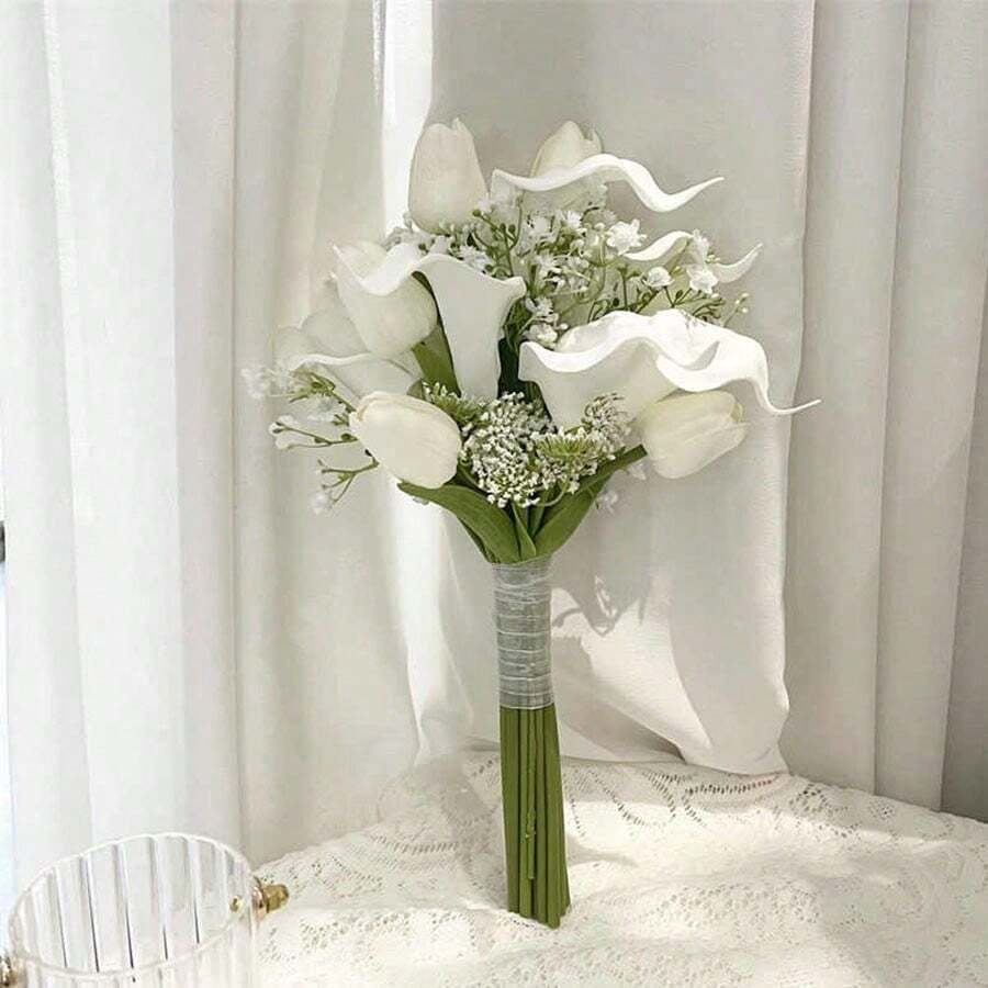 Bridal Bouquet Bridesmaid Holding Flower Real Touch Calla Lily Artificial Flowers Wedding Bridal Bouquet Floral Arrangements Decor,Wedding Photography Props Bridal Bouquets