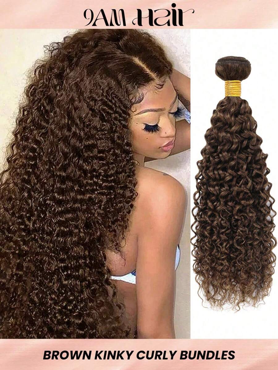 Chocolate Brown Kinky Curly Human Hair 1 Bundles 100% Brazilian Virgin Human Hair Weave Remy Human Extensions #4