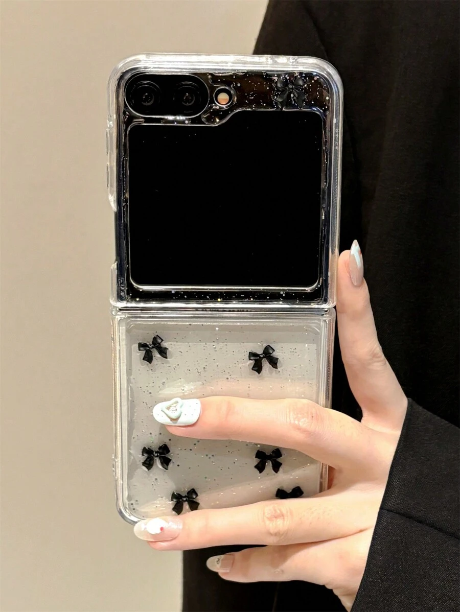 Fashion Bling Glitter Bowknot Transparent Soft Phone Case Compatible With Samsung Galaxy Z Flip 6 5 4 3 Luxury Bumper Back Cover Waterproof Shockproof Anti-Fall Scratch Resistant
