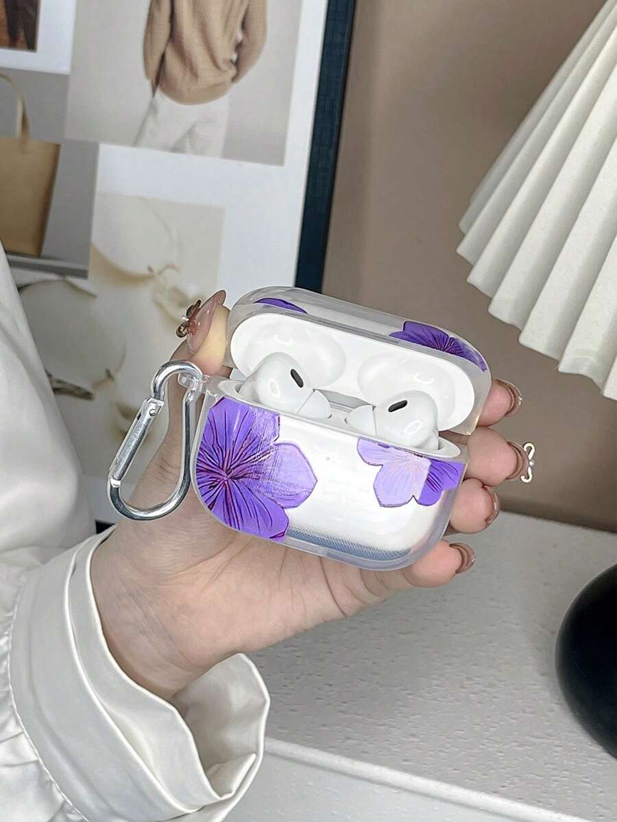 Floral Pansy Earphone Case, Cute Purple Flower Earphone Protective Case With Portable Hanging Hook, Compatible With AirPods Pro (2nd Generation), 3, Pro, 1/2, 4