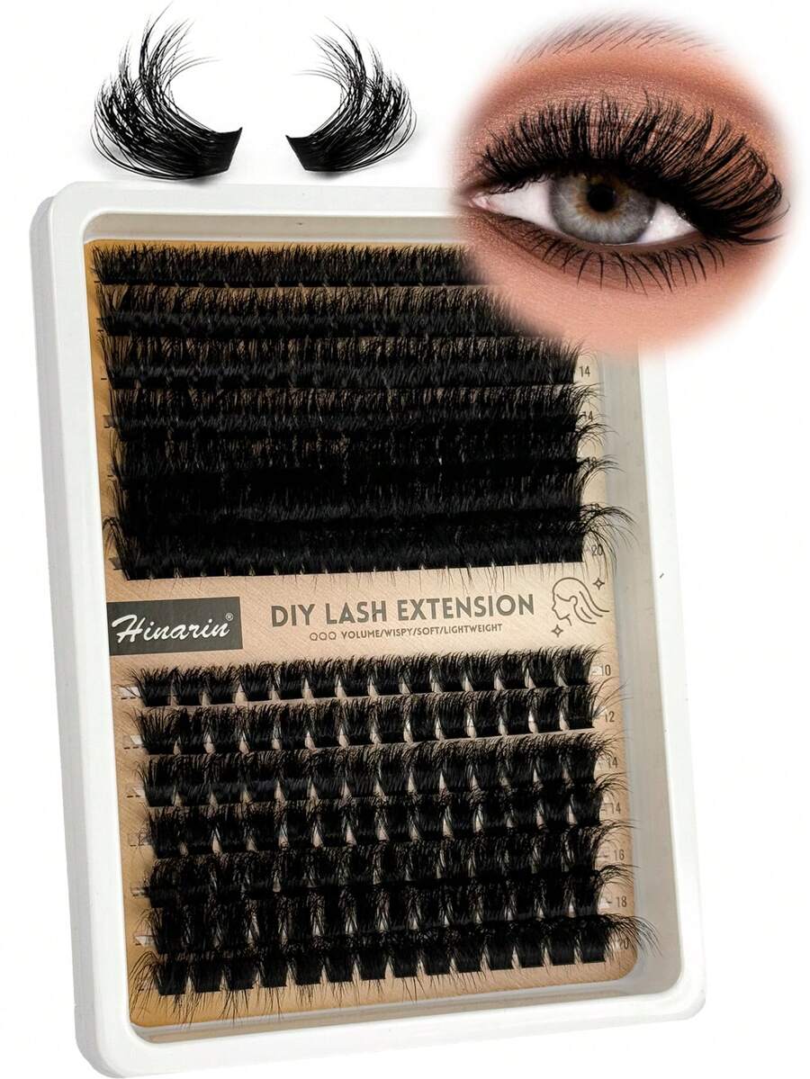 HINARIN 231pcs D Curl Individual Lash Clusters 100D+120D Eyelash Cluster Long Individual Lashes 10-20mm Thick Cluster Eyelash Extensions Volume Eyelashes Mink DIY Cat Eye Lashes Extension