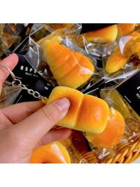 3 Random Style Slow Bounce Bread Keychain, Cute Party Gift Keychain, Simulated Mini Bread Keychain, Slow Bounce Bread Keychain, Pocket Toy, Decompression Toy, Bag Decoration, Party Small Gift, Birthday Gift, Christmas Gift, Christmas Baby Gift #5 Bestseller