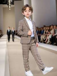 2pcs/Set Young Boy Plaid Suit Jacket And Pants. Made Of Soft, Pilling-Resistant And Shrink-Resistant Fabric, The Fitted Jacket Has A Neat And Casual Look, And The Elastic Waist Pants Are Adjustable, Suitable For Kids To Wear To Parties, Weddings, And School In Spring, Autumn And Winter.
