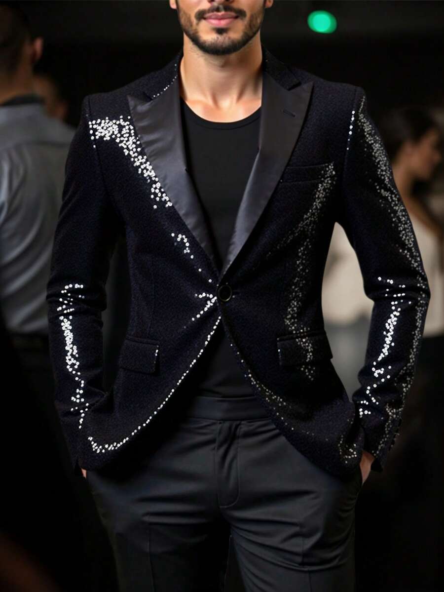 Men's Black Jacket, Sequin Jacket, Suit Jacket, Disco Jacket, Suitable For Nightclubs, Parties, Birthday Parties, Graduation Dances