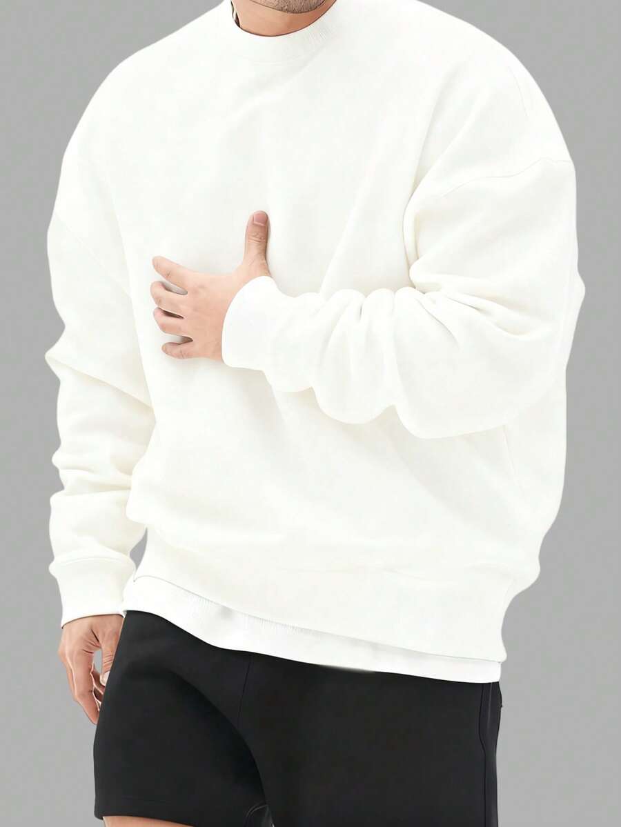 Men's Solid Color Casual Street Loose Fit Crew Neck Sweatshirt, Autumn/Winter