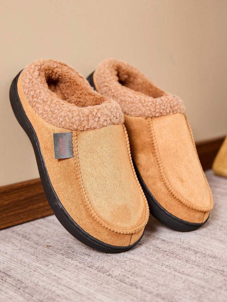 Men's Warm Slippers, High-Quality Fashion Stitched Design, Comfortable Plush Lining, Thick Warm Solid Color, Durable Non-Slip For Indoor/Outdoor, Travel & Leisure, Knitted Material