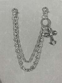 1pc Men's Single Silver Chunky Chain Double Loop Cross Accessory For Suits, Pants Summer, School Autumn-Winter Accessories Halloween Costume,Suitable For Teens, Youth,Men,Casual, Outdoor, Athletic, Vacation, Graduation Gifts, Birthday, Daily Wear #2 Bestseller