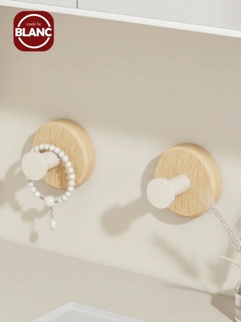 Minimalist Wooden Style, Suitable For Bedroom, Bathroom, Foyer And Other Scenes, Retains Natural Wood Tone, No Excessive Patterns, Compact Hook Shape, Smooth Edges, Wall-Mounted Hanging Hooks Won't Damage Walls, Strong Adhesive Bathroom Hooks, Hanging Clothes Rack, Wall-Mounted Wooden Hooks, No Drilling Required