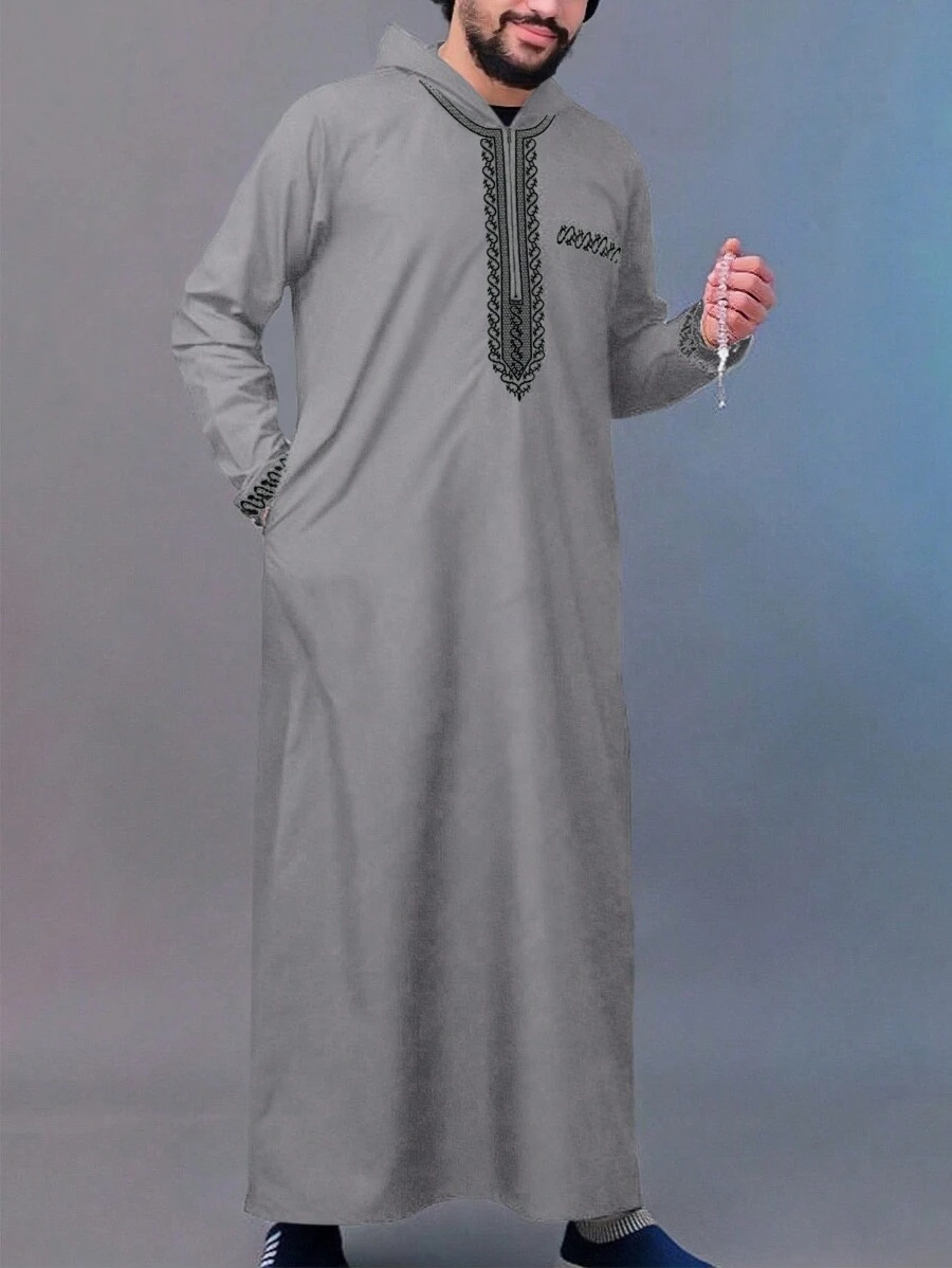 New Men's Loose Hooded Robe Luxury Men's Embroidered Long Sleeve Muslim Clothing Robe Middle East Juba Sobey Traditional Men's Robe