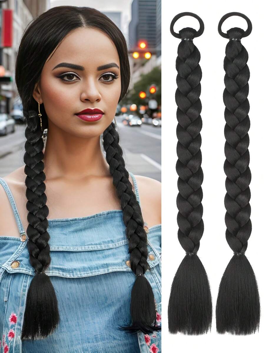 Pack of 2 Braiding Hair 16Inch Suitable For Women And Children Daily Holidays And Cosplay Braided Wear Blac Fashion Synthetic Hair Crochet Hair Extensions Useful and Deft High Temperature Hair Woven hair extensions for Halloween and Christmas