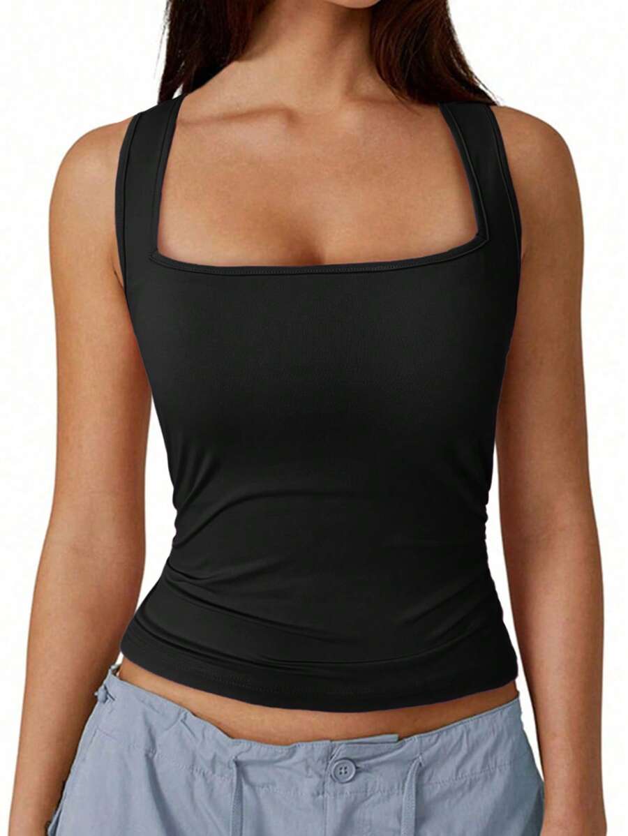 SHEIN SXY Summer;Casual Clothing Black Autumn Base Layer Solid Color Women's Tank Top