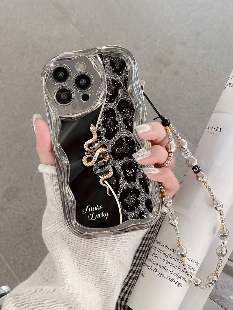 Snake Skin Painted Electroplated Bracelet Decor Soft Phone Case Compatible With IPhone 16/16 Pro/16 Pro Max, IPhone 15, XR, 7P 8P, P12 Pro Max, P13 Pro Max, P14 Pro Max, P13, P14, P11, P12, P14, XS/S/XS Max/7 8 GES2, Cute & Fashionable Thick Protective Phone Cover