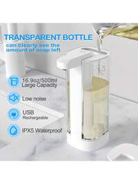 1pc Touchless Automatic Soap Dispenser, Wall-Mounted Electric Foaming Hand Wash Liquid Soap Dispenser, Automatic Sensor Dish Soap Dispenser, IPX5 Waterproof, 380ML Visible Tank, 4 Adjustable Modes, Compatible With Various Liquids, Compact & Portable, Smart Hygiene Tech Product, Suitable For Kitchen, Bathroom, Hotel, Ideal Home Gift 500ml Touchless Rechargeable Infrared Sensor Soap Dispenser, Wall-Mounted Electric Smart Foaming Hand Wash Liquid Dispenser, Automatic Kitchen Dish Soap Dispenser, Made Of ABS Material, IPX5 Waterproof, 4 Flow Rate Adjustable, Suitable For Bathroom, Kitchen, Restroom, Essential Gift For Christmas, Halloween, New Arrival For Autumn 1pc 500ML Extra Large Capacity Touchless Smart Liquid Automatic Dispenser, Electric Smart Infrared Sensor Soap Dispenser, Hand Cleaner | Modern Kitchen Accessory | Bathroom Liquid Soap Dispenser, Tabletop Or Wall-Mounted, 4 Adjustable Flow Levels, IPX5 Waterproof, Transparent Tank, Quick Sensing Soap Nozzle, Suitable For Various Liquids, Ideal For Kitchen, Bathroom, Holidays, And Home Cleaning