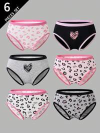 Tween Girl 6pcs Cotton Vintage Heart Plaid Print Panty