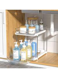 Brodark Global Flagship Store2-Layer Adjustable Sink Storage Rack, PP Expandable Plastic, Simple And Practical Style, No Pattern Solid Color, Expandable Rectangular Shape, Detachable And Freely Combined Panel, Snap Type Tool Free Splicing, Smooth Edges Without Burrs, Bottom Anti Slip Silicone Pad, Multifunctional Storage (Pots/Dishes/Cleaning Supplies/Toiletries),