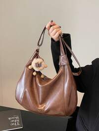1pc (13.4in*11.0in*7.1in) Fashion Women's Shoulder Bag, Crossbody Bag, Sling Bag, Messenger Bag, Crescent Bag, Made Of PU Material, Suitable For Shopping, Dating, Parties, Work Commute, Adjustable Strap, Decorative Pendant, Elegant Minimalist Casual Chic Coffee Color Women's Shoulder Bag #5 Bestseller