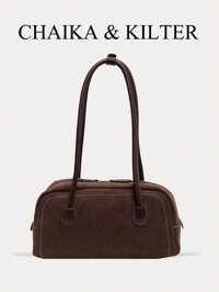 Magic cik 1pc Low Tea Solid Color Suede Fabric Shoulder Bag, Women's Retro Fashion Square Shoulder Bag With Top Double Handles, Zipper Closure, Suitable For Travel, Shopping, Dating, Women's Gift, Great For Commuting, Outdoor, Travel, Hiking , Office Bag , Valentines Gifts #2 Bestseller