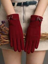 1pc Women's Warm Fleece Gloves - Fashion Bow Decor Fleece Touchscreen Gloves For Winter