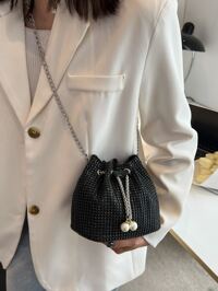 TBWLightweight, Business Casual Rhinestone Decor Bucket Bag Mini Drawstring Design, Clear Bag Faux Faux Pearl Bag Evening Bag, Dinner Bag Glamorous, Elegant, Exquisite, Quiet Luxury Rhinestone For Party Girl, Woman Perfect For Party, Wedding, Prom, Dinner/Banquet, Perfectly Matching With Prom Accessories, Perfectly Matching With Bridal Party, Best Choice Elegant Bag For Bridal Shower, Clutch Bag For Wedding, Party Bags,Perfect For Party Wedding Prom Dinner/Banquet Matching With Holiday Party Dress Evening Dress & Sequin Dress , New Year #1 Bestseller
