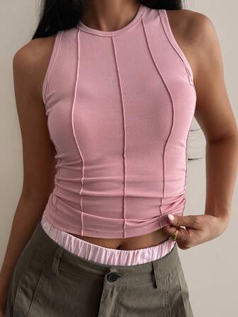 DAZY 야외 피티드 민소매 라운드넥 스포츠 탱크 탑
