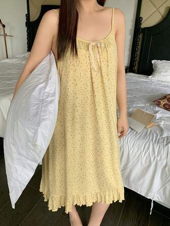 Dazy Plus 귀여운 잔잔한 플로럴 루즈핏 민소매 미디 나이트가운, 봄/여름을 위한 편안한 홈 드레스